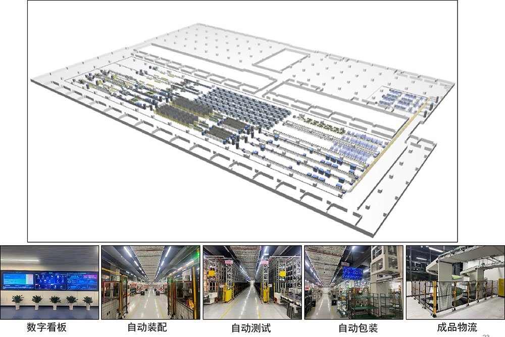 项目减人增效:单线23个自动化工站+1套自动化立库老化系统,共92个自动工站