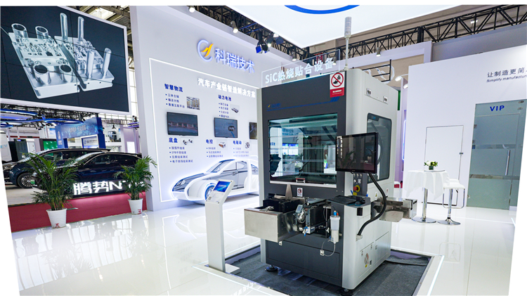 在典型设备应用上,重点展示了用于汽车电子电气系统的线束自动插壳机以及用于驱动系统的SiC热烧贴合设备。