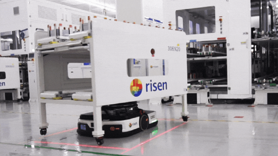 于是,东方日升通过与腾讯云和科瑞技术旗下深圳瑞联智造的合作,联合研发了“AGV智能调度系统”,实现了产线设备与机构、货架、缓存、AGV等设备的对接集成,实现了车间物流、智能配送对多任务、多机台点位汇聚,完全实现了AGV代替高强度的人工搬运,从而保障车间7×24小时无间断生产工作,以及车间设备高效运行。