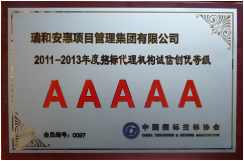 2011-2013年度招标代理机构诚信创优5A等级牌匾