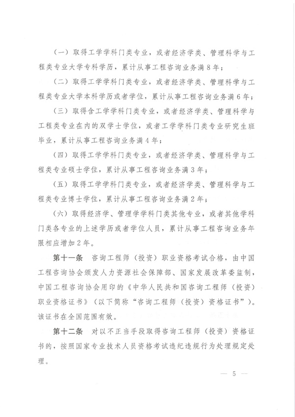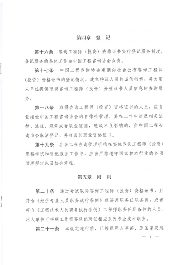 中国工程咨询协会转发人力资源社会保障部国家发展和改革委员会关于印发《工程咨询(投资)专业技术人员职业资格制度暂行规定》和《咨询工程师(投资)职业资格考试实施办法》的通知