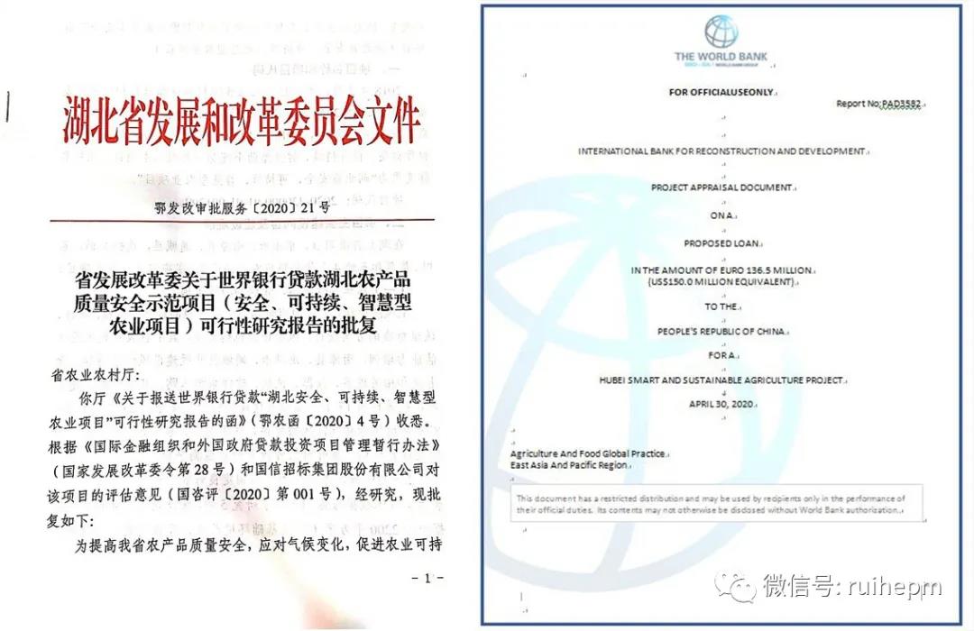 瑞和安惠项目管理众博网页版武汉分公司高质量、高效率、高标准完成的湖北省安全、可持续、智慧型农业项目可行性研究报告及资金申请报告编制工作,得到世界银行组织、湖北省发展和改革委员会、湖北省农业农村厅等相关单位、领导的高度认可。