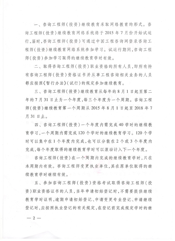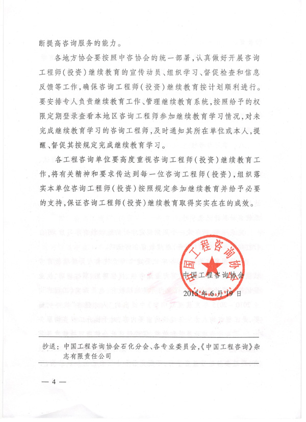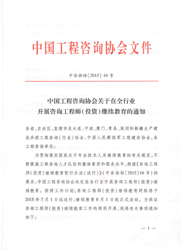 中国工程咨询协会关于在全行业开展咨询工程师(投资)继续教育的通知