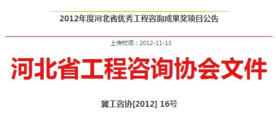 附:2012年度河北省优秀工程咨询成果获奖项目名单