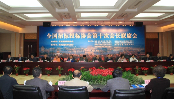 10月18-19日,全国招标投标协会第十次会长联席会议在西安召开。来自中国招标投标协会及全国16家省级招标投标协会会长、副会长、秘书长等50余 人参加了会议。国家发展改革委重大项目稽察办任树本主任、法规司孟玮处长、中国招标投标协会霍春林常务副会长、贾建华副会长、陕西省发展改革委张光进副主 任、陕西省招标投标协会高仰秀会长等领导出席会议并讲话。会议由陕西省招标投标协会承办。