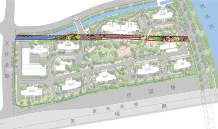 本项目地块位于文化路东、晋源花园一期北地块范围内,地块西面为文化北路,东侧紧邻京杭运河,晋源花园一期南面紧靠南环高架、苏福路。
