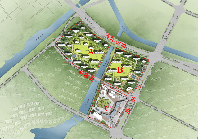 B地块为住宅用地,占地面47422.6平方米,计容建筑面积94845.2平方米。容积率为2.0,绿地率30%,建筑密度14.12%。