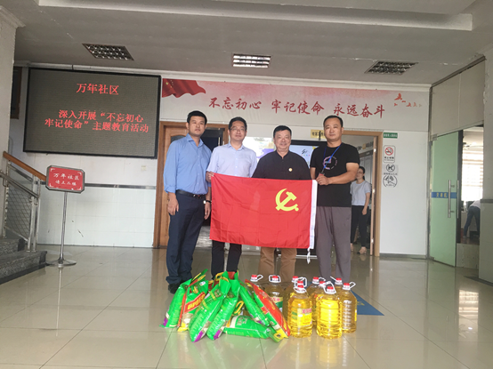国庆将至,为了迎接中华人民共和国70周年国庆,让困难群众感受幸福、喜庆的节日氛围,2019年9月29日上午,公司党支部书记、总经理王燕鸣,副总经理刘兴浩、芮锐锐等一行人来到万年社区,为公司结对帮扶的十户生活困难群众送去米、油等生活用品。