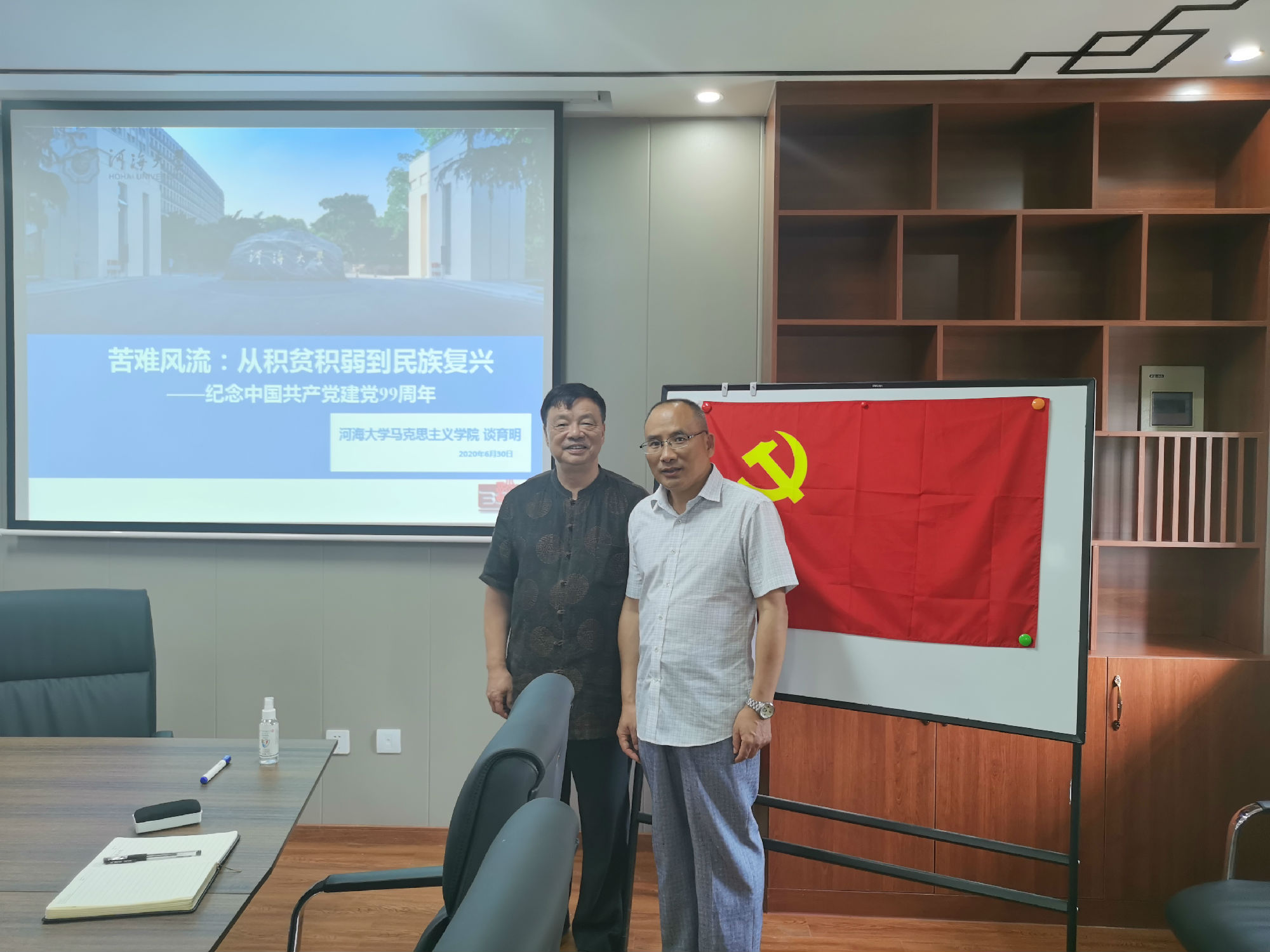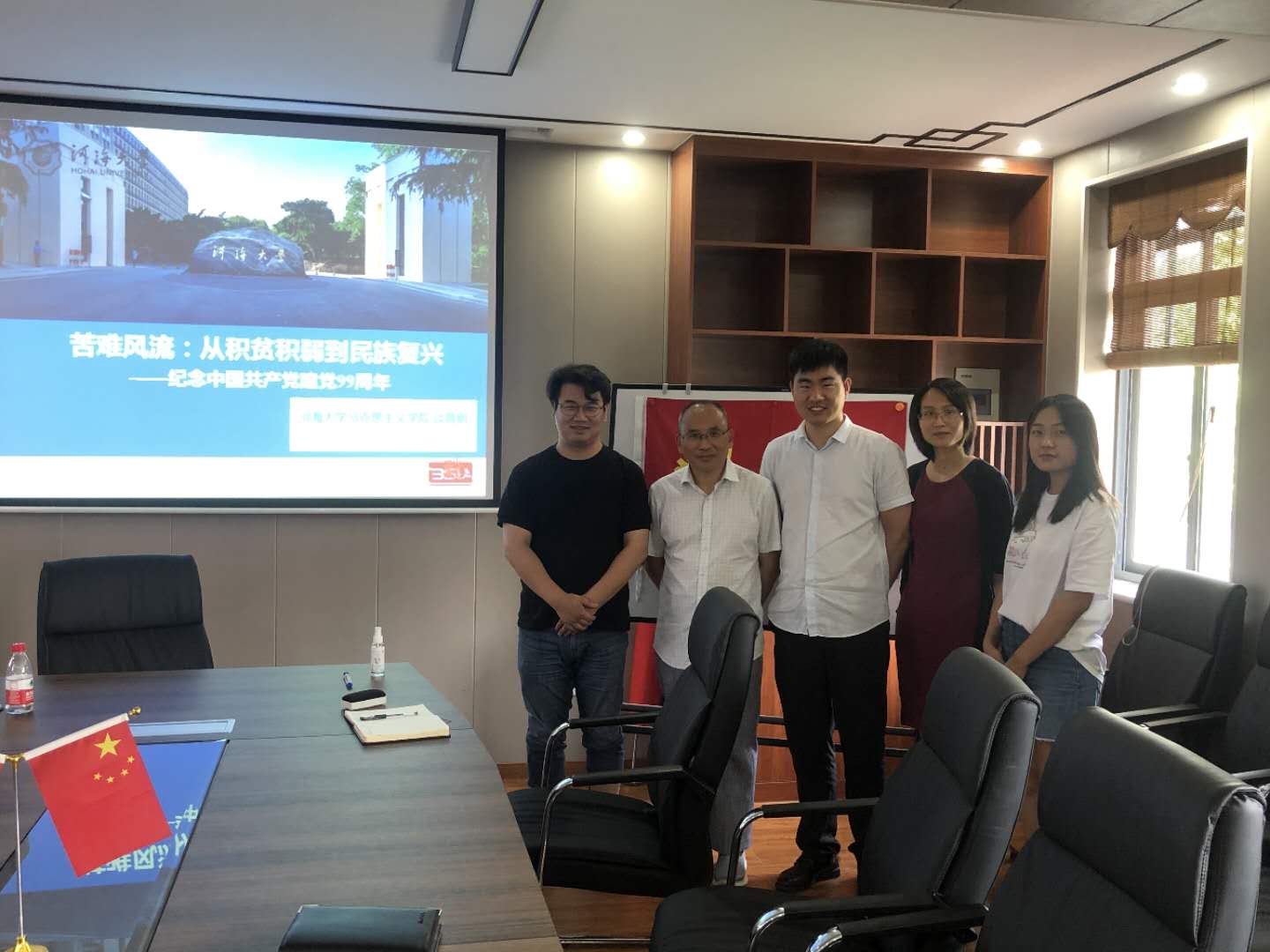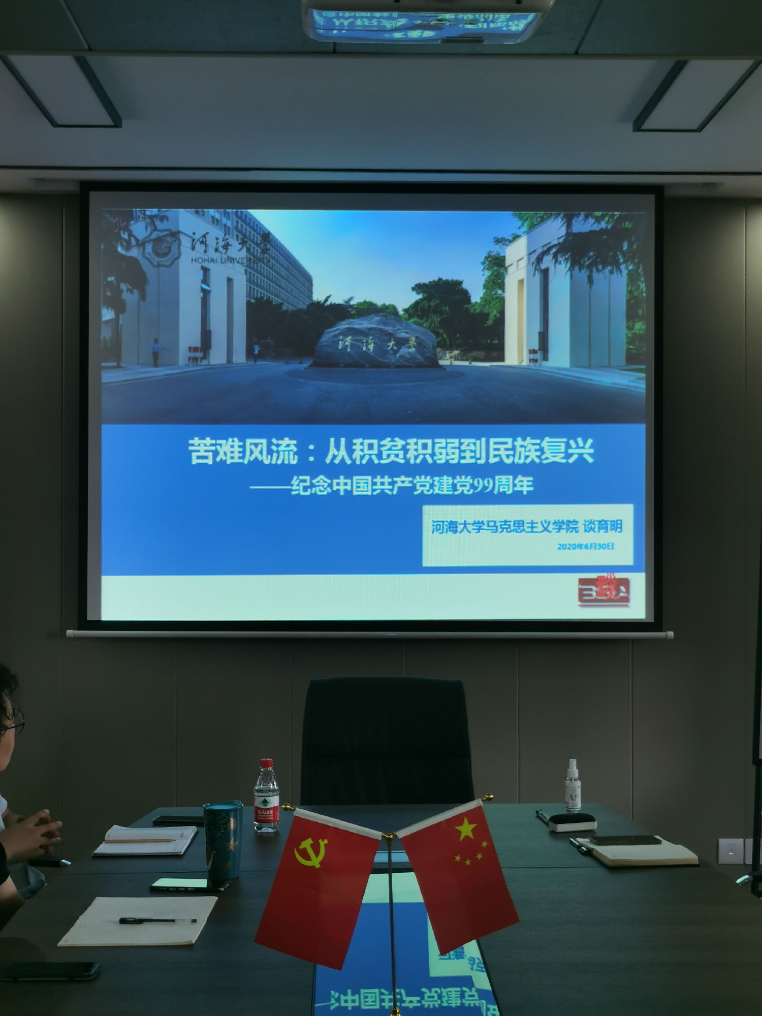 为纪念中国共产党建党99周年,2020年6月30日下午,中共瑞和项目管理众博网页版苏州分公司党支部举办了“苦难风流:从积贫积弱到民族复兴”主题党课。本次党课由河海大学马克思主义学院谈育明老师授课。