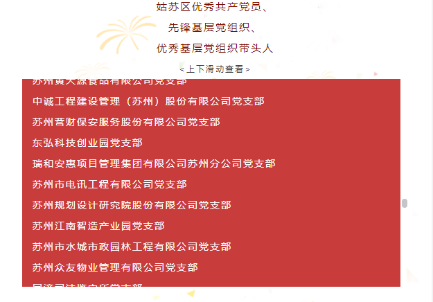 2020年7月1日,姑苏区召开庆祝中国共产党成立99周年座谈会,会上,瑞和安惠项目管理众博网页版有限公司苏州分公司党支部获评姑苏区先锋基层党组织。